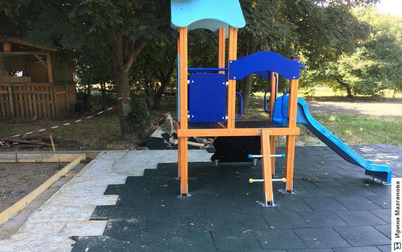 На реновираната площадка е поставена пързалка, а обезопасителните ленти са скъсани и на нея вече играят деца. Това обаче не е редно, коментираха родители за Искра.бг: