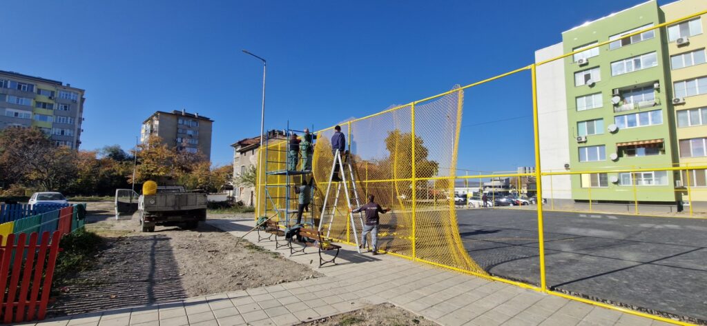 В момента се работи по спортно игрище с площ от 475 кв. м. То ще бъде комбинирано за футбол и баскетбол. През тази седмица се поставя ограничителна мрежа около съоръжението. След това ще се положи полиуретанова настилка и ще бъде монтирано спортното оборудване.