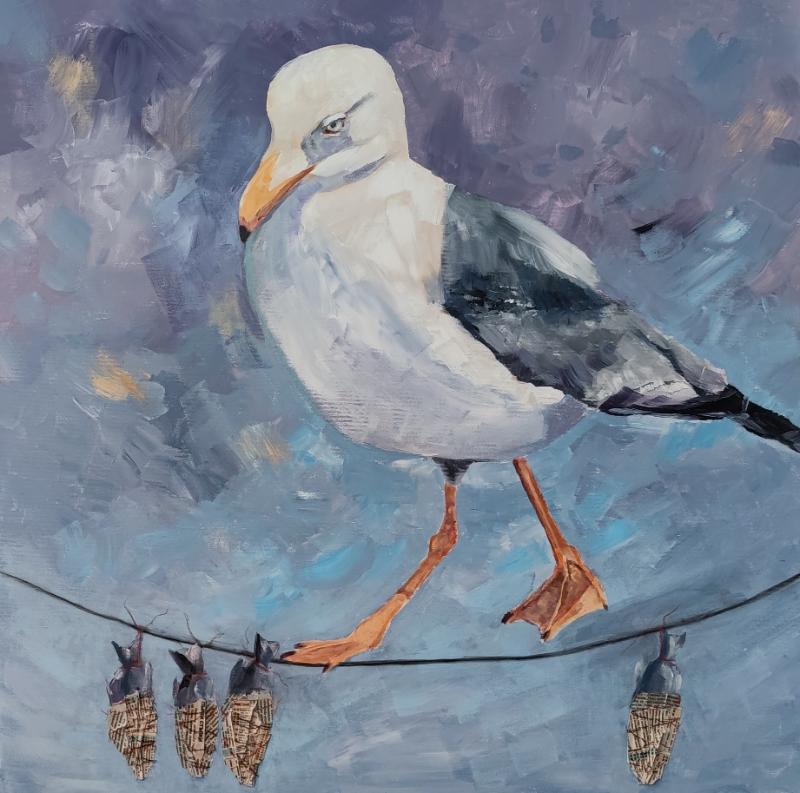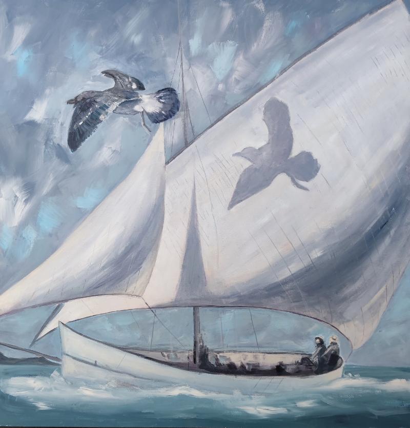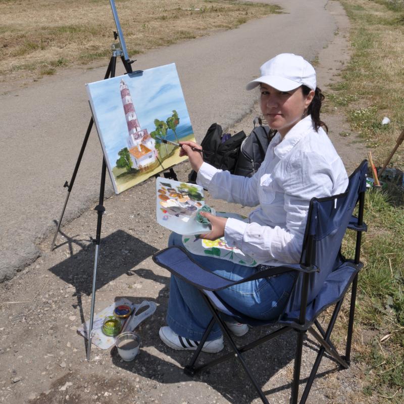 Авторката на изложбата „Легенда за платната” художничката Сияна Струнчева край морето, фаровете, корабите и гларусите – любимото й работно ателие.