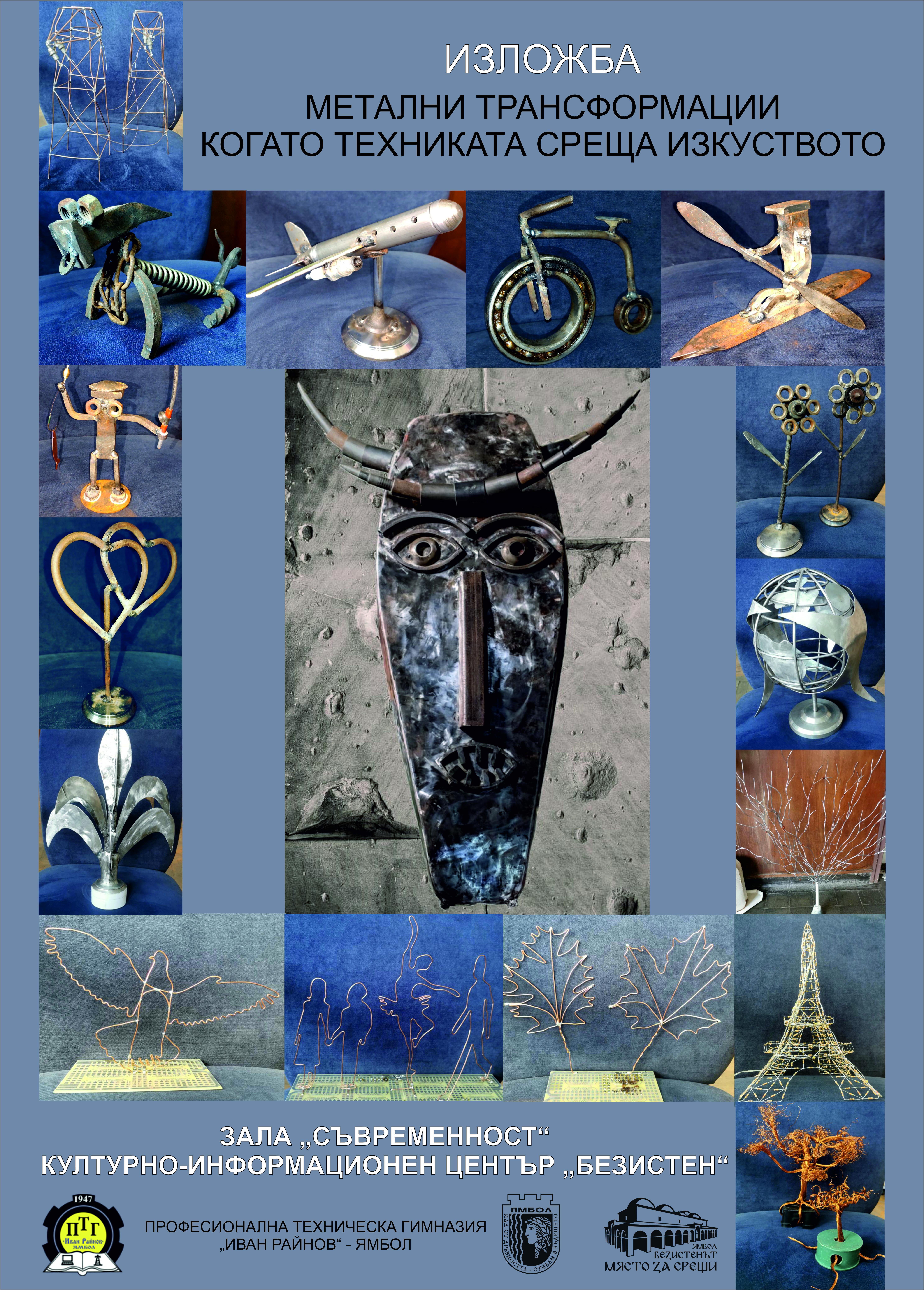 Изложба „Метални трансформации: Когато техниката среща изкуството” представя ПТГ „Иван Райнов” по случай тазгодишния празник на училището и Деня на Ямбол, съобщиха от учебното заведение. Експозицията включва фигури, композиции, пана, арт инсталации изработени от алуминий, мед и стомана. Те са дело на ученици от гимназията и са направени чрез заваряване по методите на ръчно електродъгово заваряване /МИГ\MАГ/, което същевременно е част и от професионалната им подготовка.