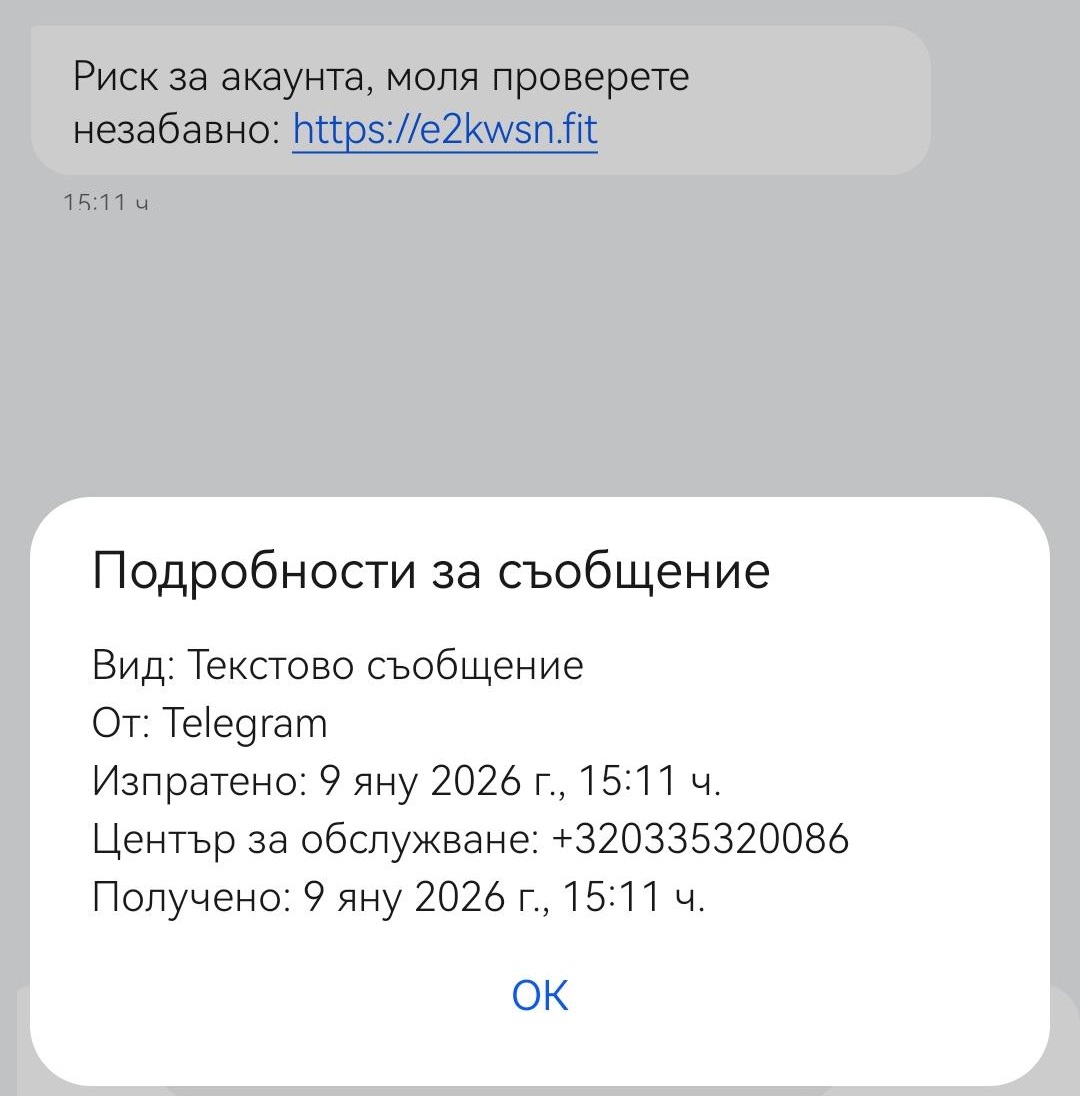 Сигнал за лъжливи есемеси, свързани с приложението Telegram, постъпи в редакцията на Искра.бг. Такъв бе подаден и в канала https://t.me/stopizmami