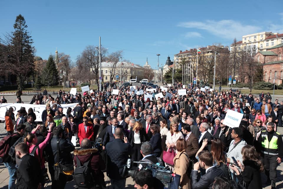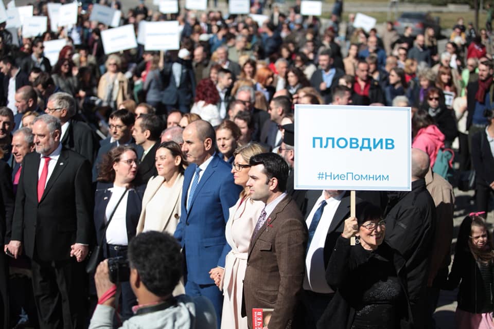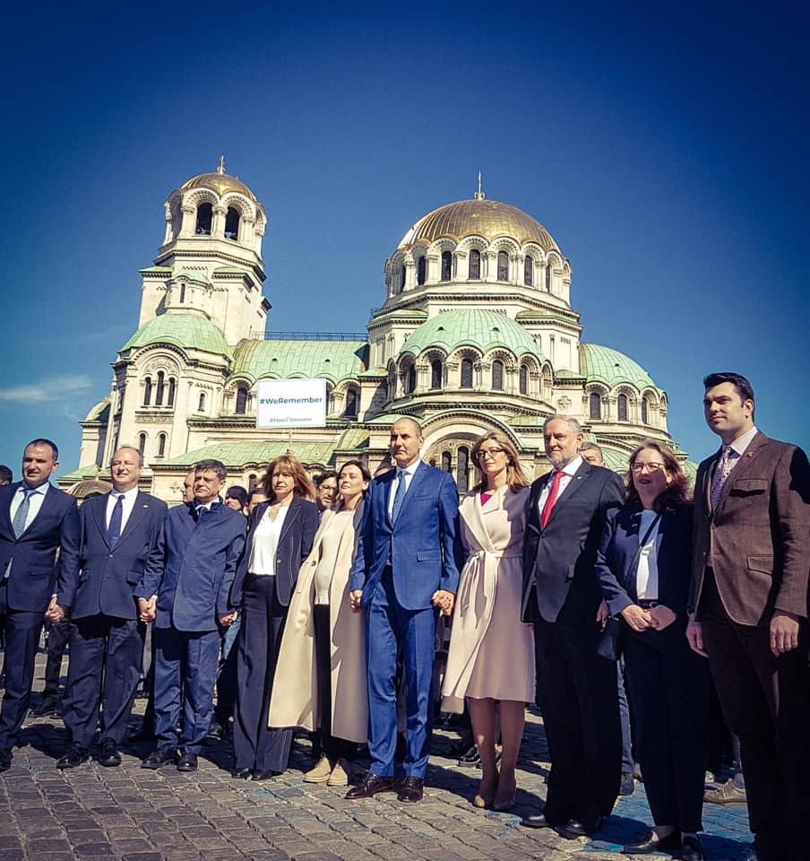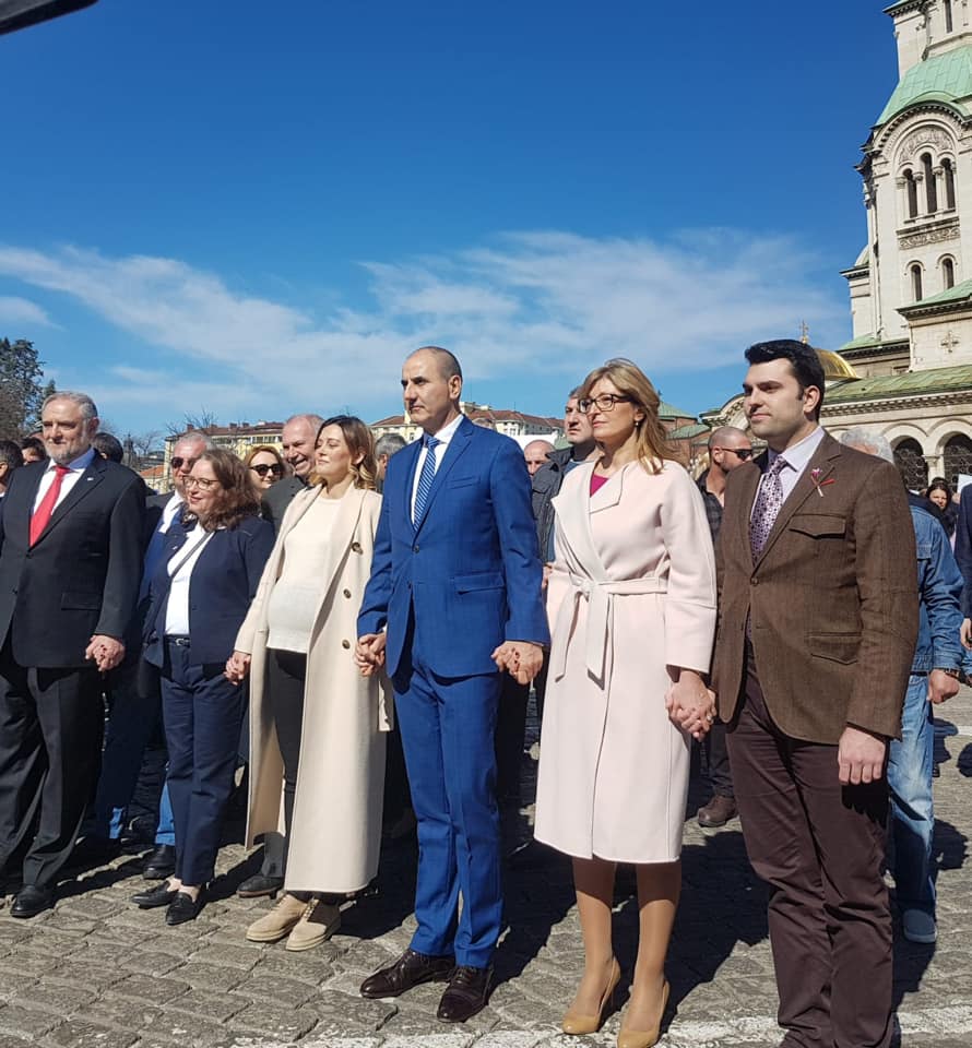 Председателят на парламента Цвета Караянчева, вицепремиерът и външен министър Екатерина Захариева, столичният кмет Йорданка Фандъкова, президентът на Световния еврейски конгрес Роналд Лаудер, представители на Светия синод и депутати се хванаха за ръце и поведоха шествието.