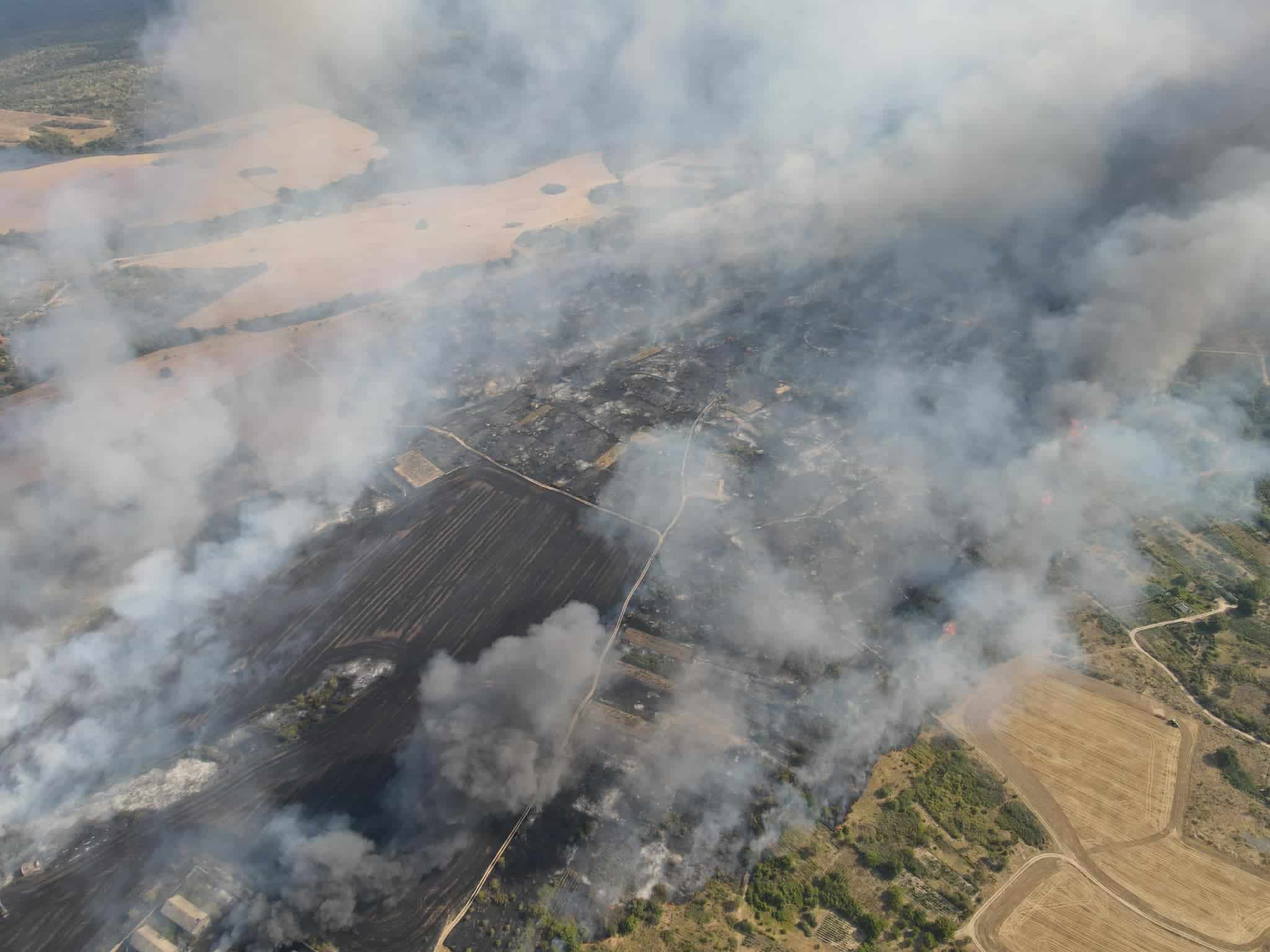Пожарът край Харманли е в близост до бензиностанция. Има опасност от взрив