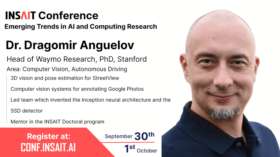 Д-р Драгомир Ангелов е световно-известен учен в областта на компютърното зрение, директор на изследователската дейност на Waymo и един от менторите в докторантската програма на INSAIT, съобщиха от Института.