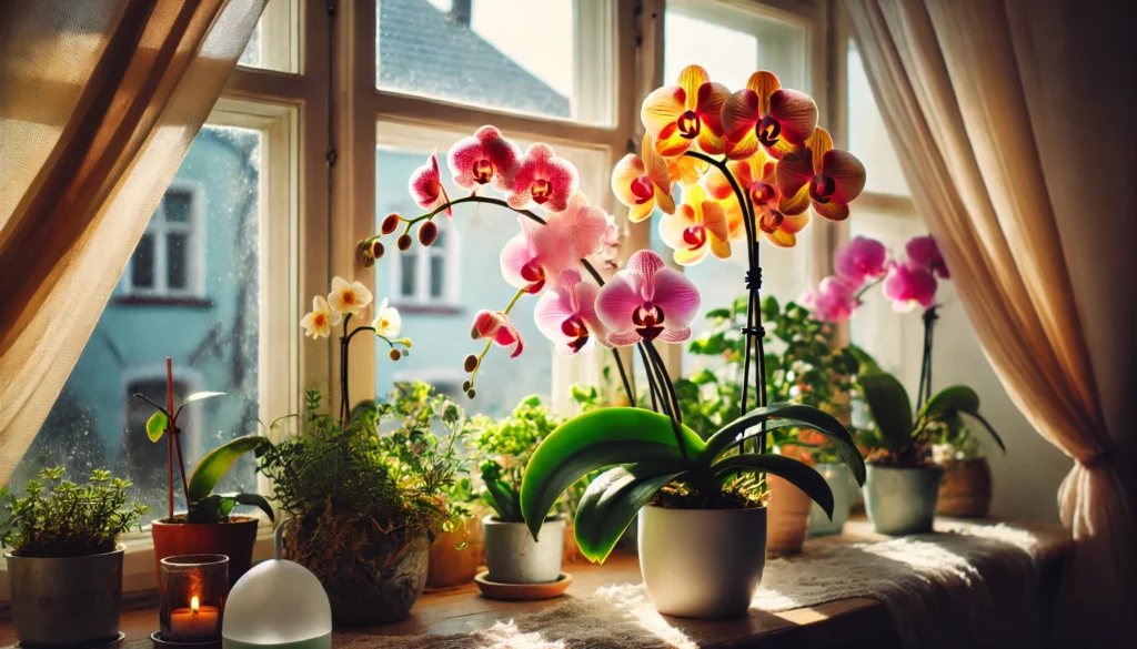Орхидеите обичат ярка, но непряка светлина. Най-доброто място за тях е на перваза на прозорец с източно или западно изложение. Тези прозорци осигуряват мека сутрешна или следобедна светлина, която е идеална за орхидеите. Избягвайте пряката слънчева светлина, тъй като тя може да изгори листата.
