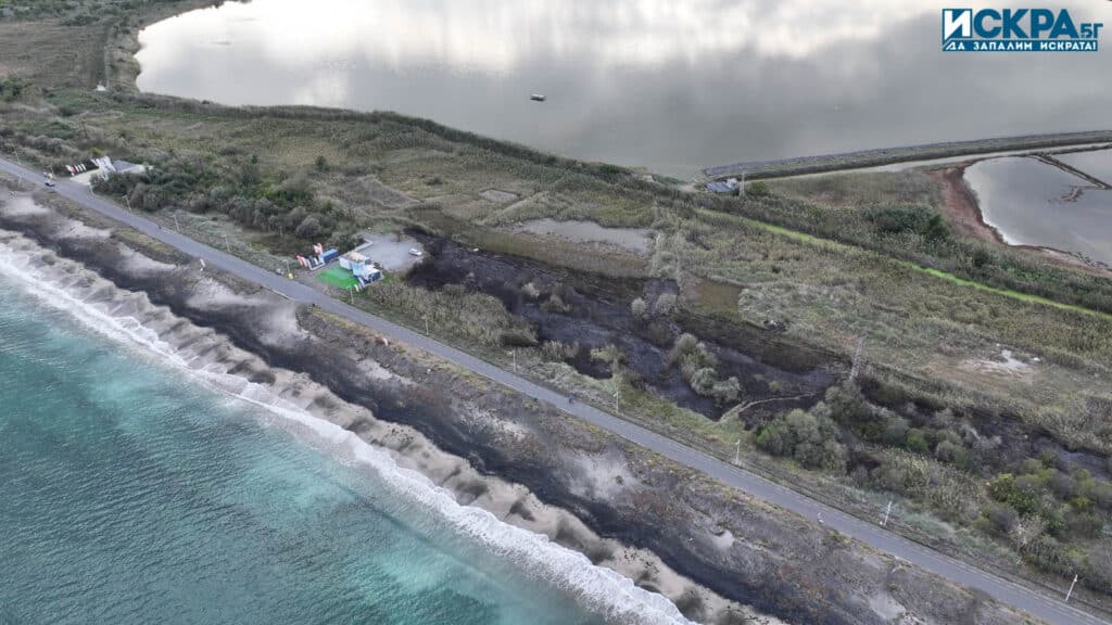 Припомняме ви, че огънят възникна вчера около 17:30 часа. Запалиха се сухи треви и папур до Атанасовското езеро и пешеходната алея към квартал „Сарафово“ в Бургас.