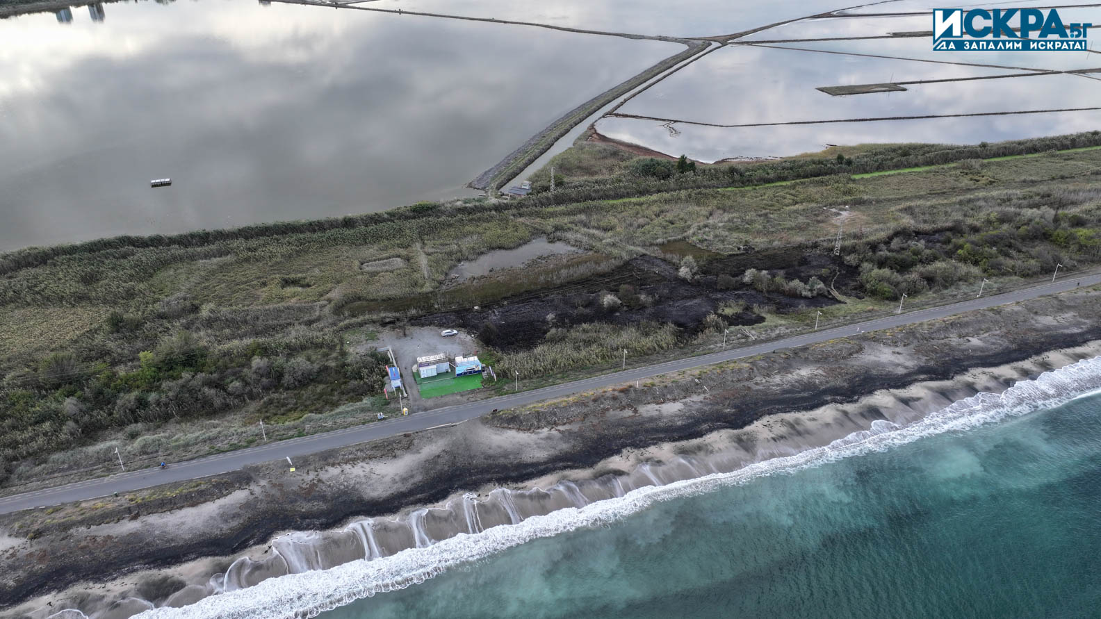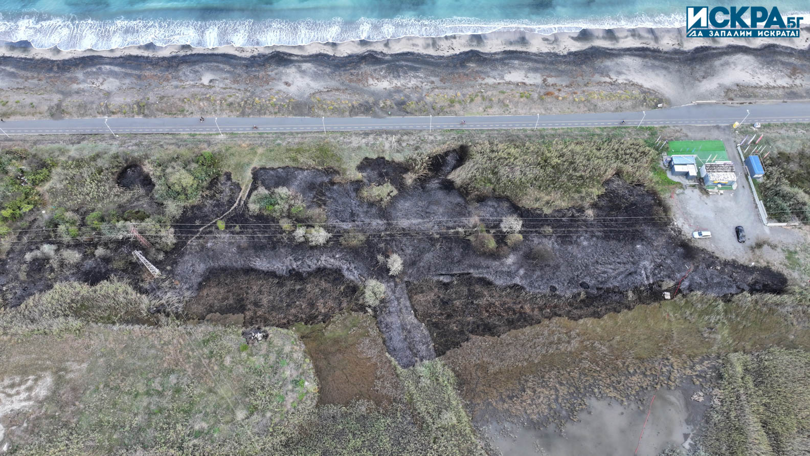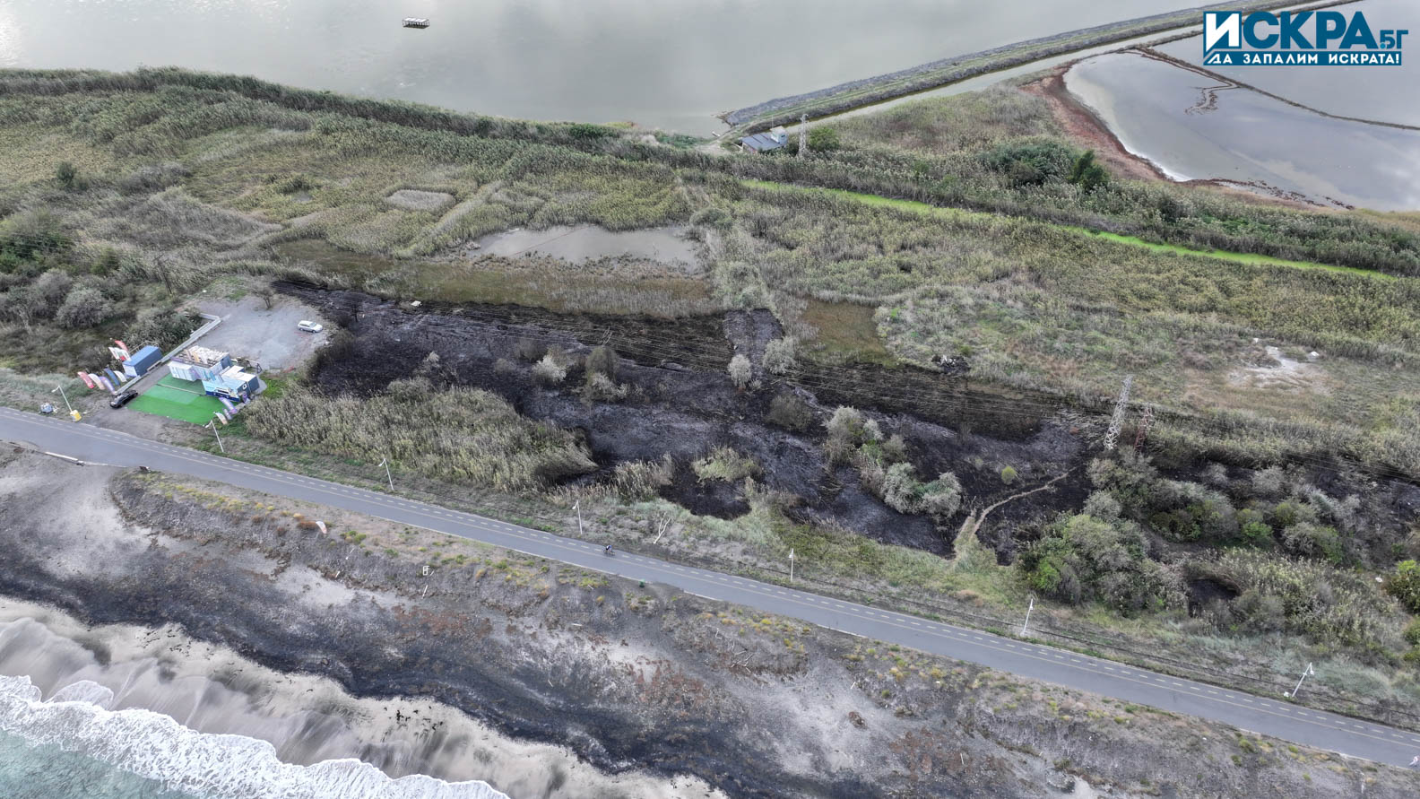 Наши читатели ни изпратиха снимков материал, направен с дрон, от мястото на пожара в района на сърф училището в Морската градина.