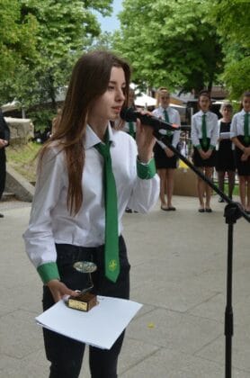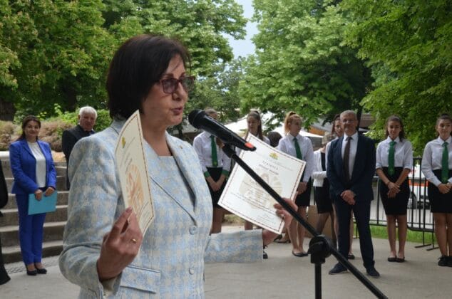 Още една талантлива ученичка получи стипендия, осигурена от Община Видин – това е Елена-Стефани Силвиева от 9 кл., СУ „Св. св. Кирил и Методий“. Наградата бе връчена от заместник-кмета Десислава Тодорова.
