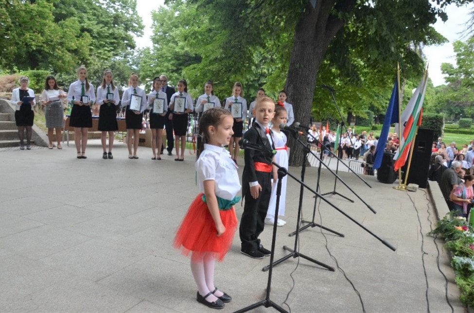 Церемонията започна под звуците на химна „Върви, народе възродени“, в изпълнение на Градския духов оркестър, след което кратък рецитал представиха шестгодишните Александра Тошева и Раян Руменов от Детска градина „Славейче“ и Александра Милкова от Детска градина „Русалка“.