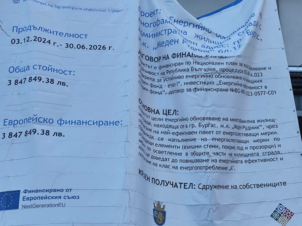 След отправеното питане към Община Бургас се очаква институцията да даде информация кой извършва техническия и строителния контрол върху дейностите по санирането и дали изпълнението на обекта отговаря на одобрения проект.