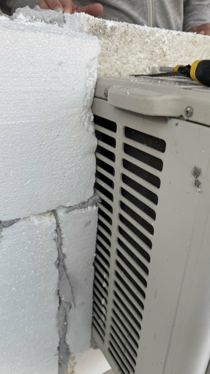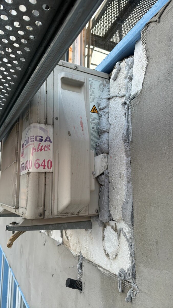 Към сигнала са изпратени и снимки от мястото, на които се виждат външни тела на климатици, около които вече е поставена топлоизолация от стиропор. На част от кадрите се вижда как изолацията е изрязана и напасната около корпуса на климатичните тела, а в други случаи пространството между машината и изолацията е запълвано с лепило или строителен разтвор. На снимките се забелязват:
