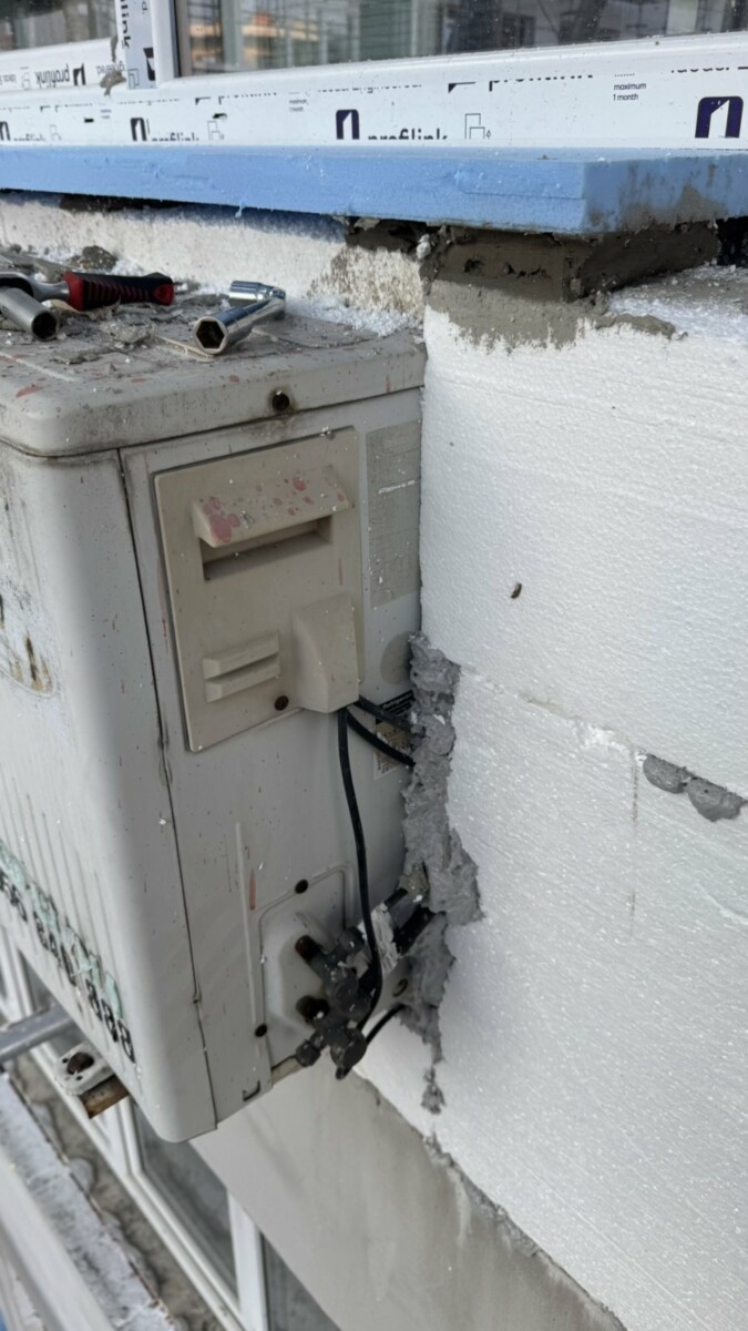 - частично разрушени или изрязани парчета от вече поставения изолационен слой около климатиците.