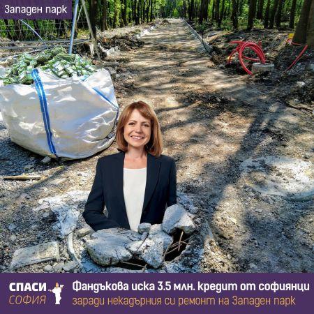 Фандъкова иска още 3.5 млн. лв. заем от общинския бюджет, за да плати за некадърното управление на ремонта на Западен парк