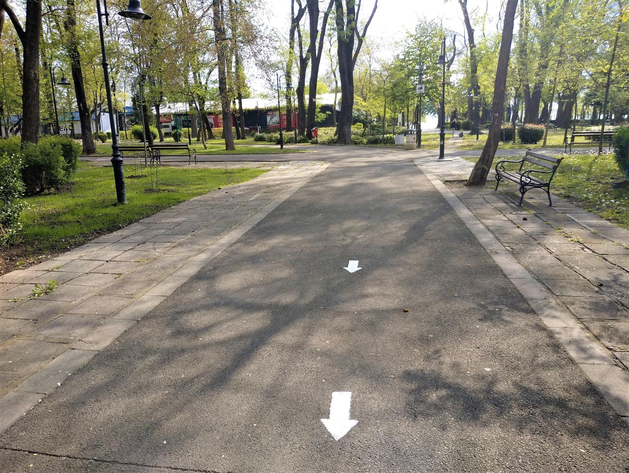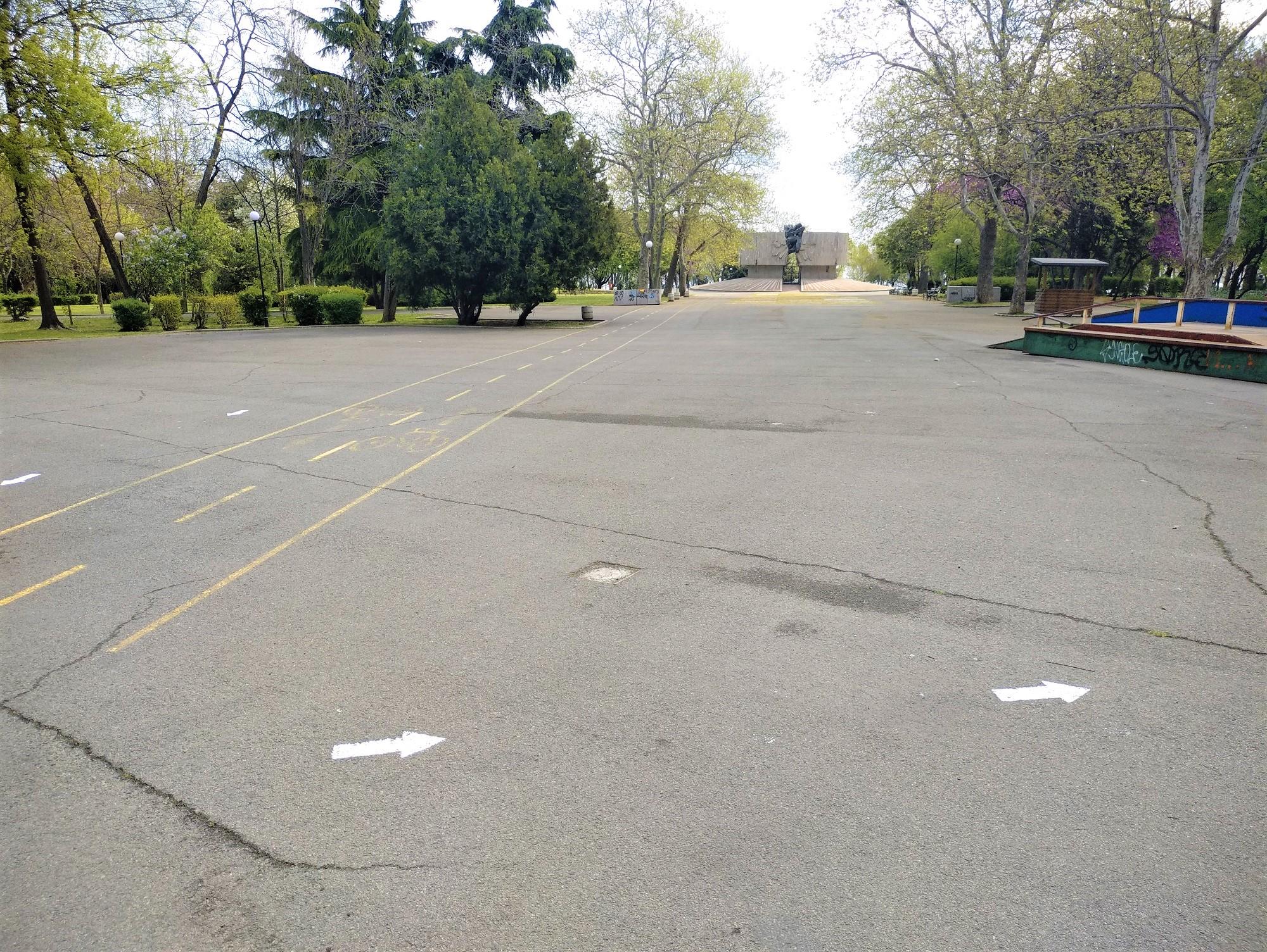 Тесните входове/изходи на парковете са маркирани за еднопосочно движение – за влизане или за излизане. На широките места движението може да е двупосочно, например – при входа на Морската градина до Гъбката или до Пантеона. Всичко това се отбелязва със съответните стрелки върху асфалта. Разчертава се цялата Морска градина, не само Историческото ядро, както и парк „Езеро“.