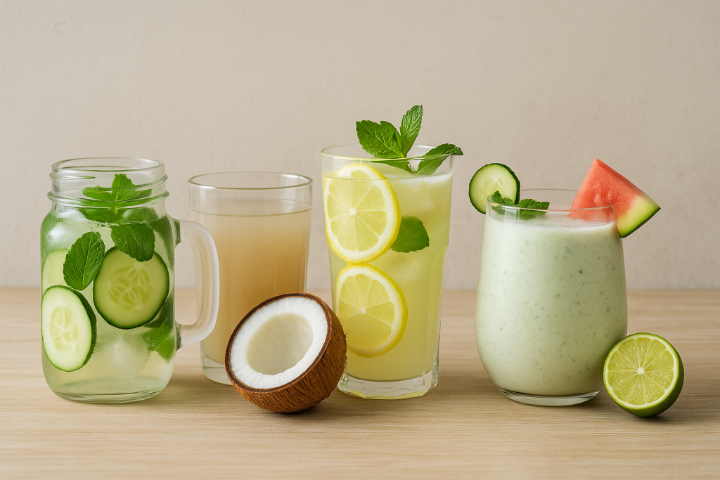 Лимонадите с щипка сол, огуречните коктейли с лимон и мента и водата, инфузирана с плодове или билки – например ягоди, босилек или праскови – превръщат ежедневното пиене на вода в ритуал на свежестта. Те не само утоляват жаждата, но и стимулират консумацията на повече течности през целия ден.