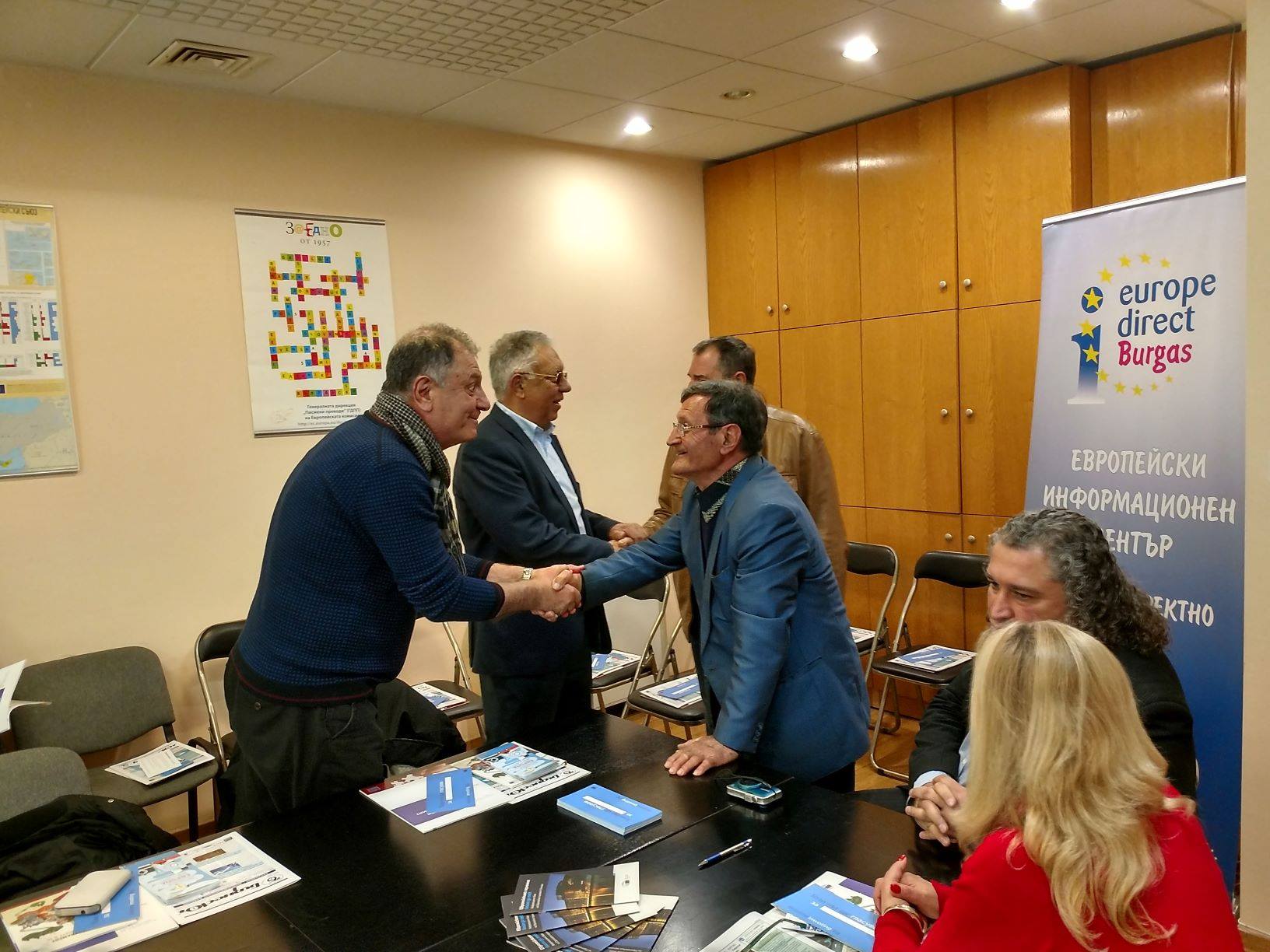 Организатори на срещата бяха Бургаската търговско-промишлена палата /БТПП/ и действащият към нея Европейски информационен център „Европа Директно“ – Бургас, част от най-голямата информационна мрежа на Европейския съюз.