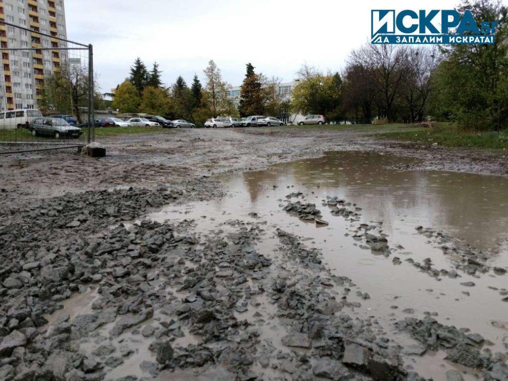 Наш репортер провери на място какво се случва. Калта и огромните локви затрудняват хората при излизането от домовете им и прибирането в тях.