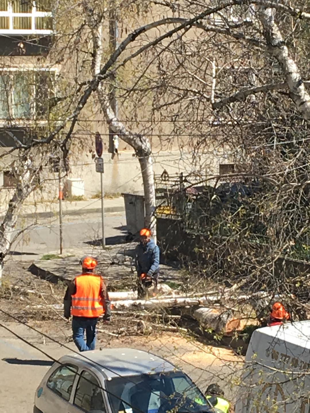 „Камионът го удари. Въпреки че видя, че не минава, той даде газ. Дървото падна и удари това до него, което пък се напукало. Сега ще режат и двете“, разказа читателят.