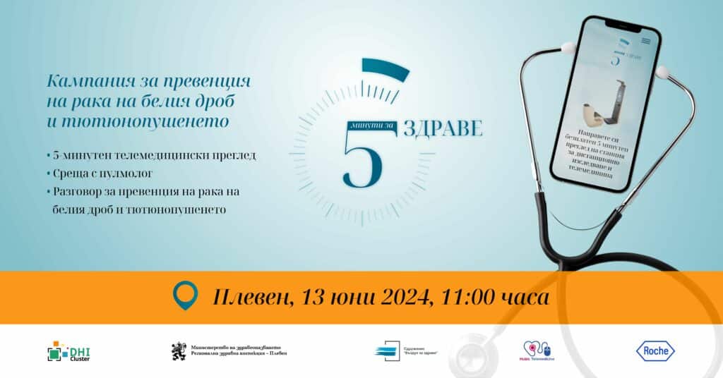 Безплатни изследвания на основни здравни показатели и функцията на белия дроб ще се проведат с помощта на телемедицината в центъра на града /пред заведение Coffeepoint Garden/, площад „Свобода“ 15, на 13 юни от 11:00 до 15:00 часа. Те са част от кампанията „5 минути за Здраве“.