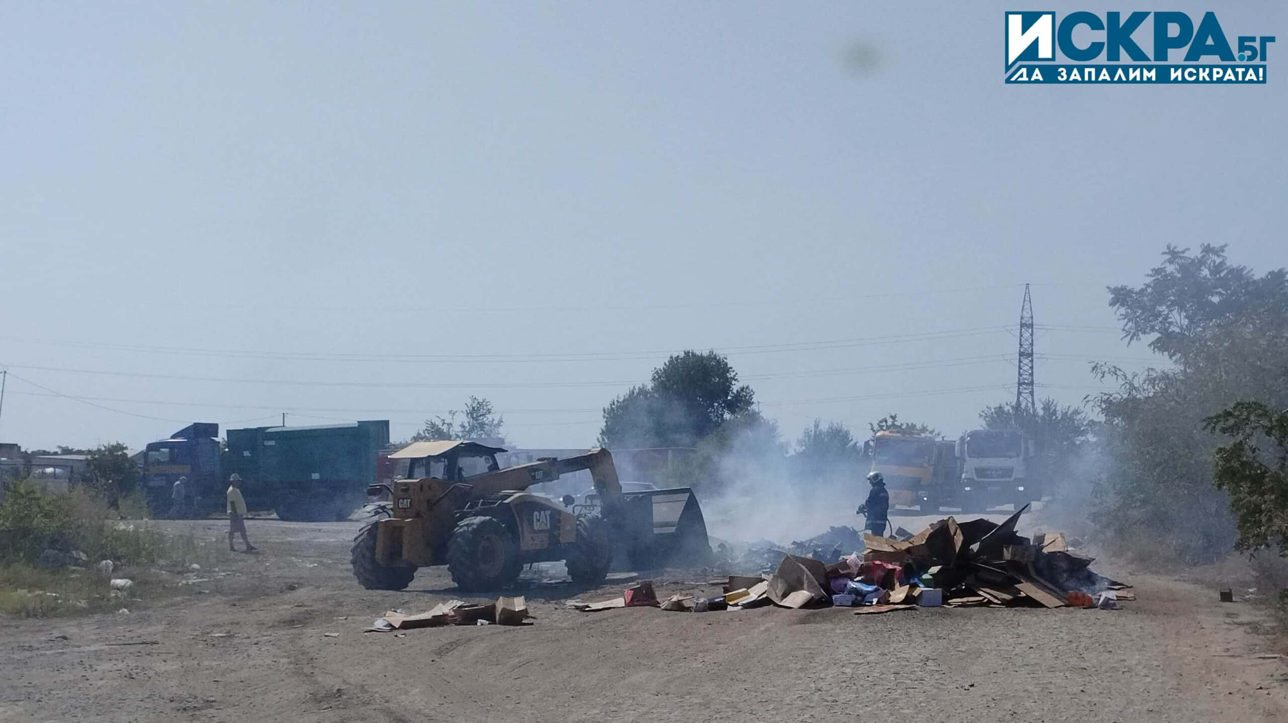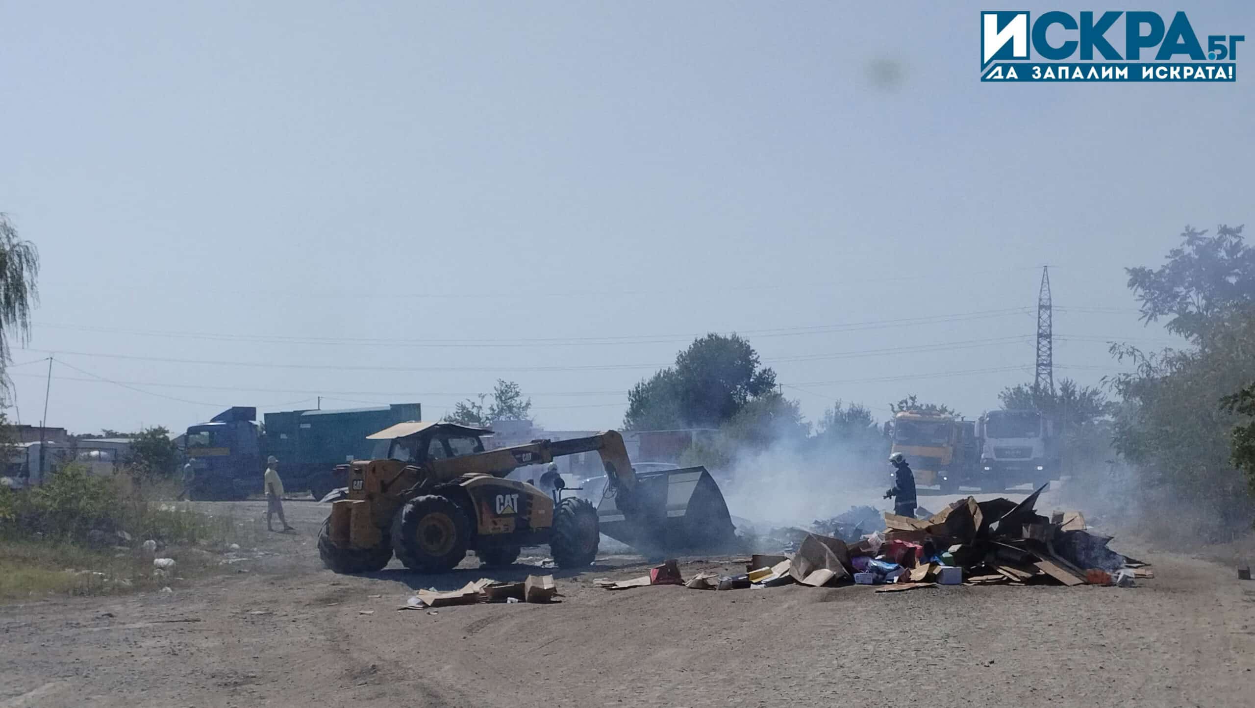 Горящи кашони и боклуци насред пътя към централното сметище в Бургас вдигнаха на крак огнеборците. Движението в района е затруднено, съобщиха шофьори за Искра.бг, уточнявайки: