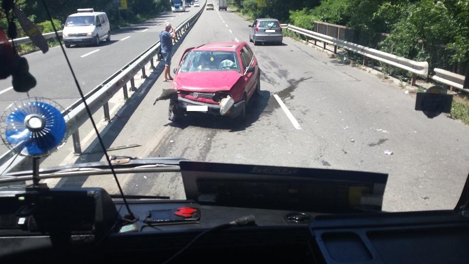 На снимки, разпространени във Facebook групата „Шофьори Бургас“ се виждат два автомобила, по които има нанесени материални щети. Единият е VW Golf с бургаска регистрация. Другият е Subaru със софийска регистрация – той се е ударил в мантинелата.