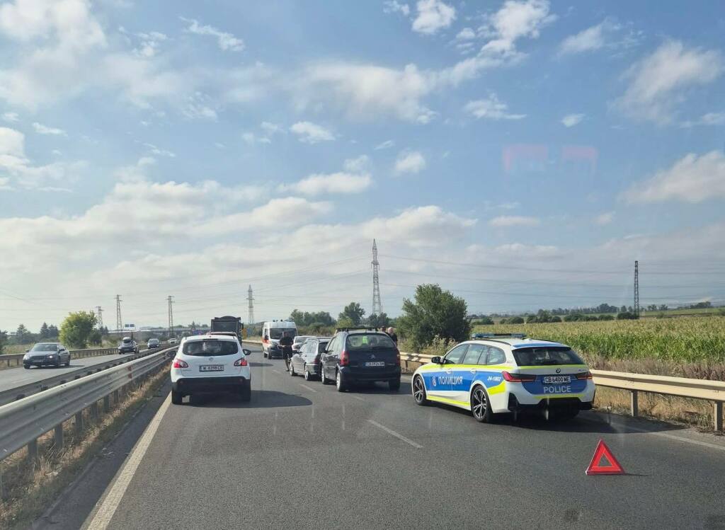Инцидентът е станал около 10:30 часа в отсечката между Костинброд и Волуяк. Според първоначалните данни са се сблъскали две коли. На място са пристигнали полицейски екипи и спешни медици.