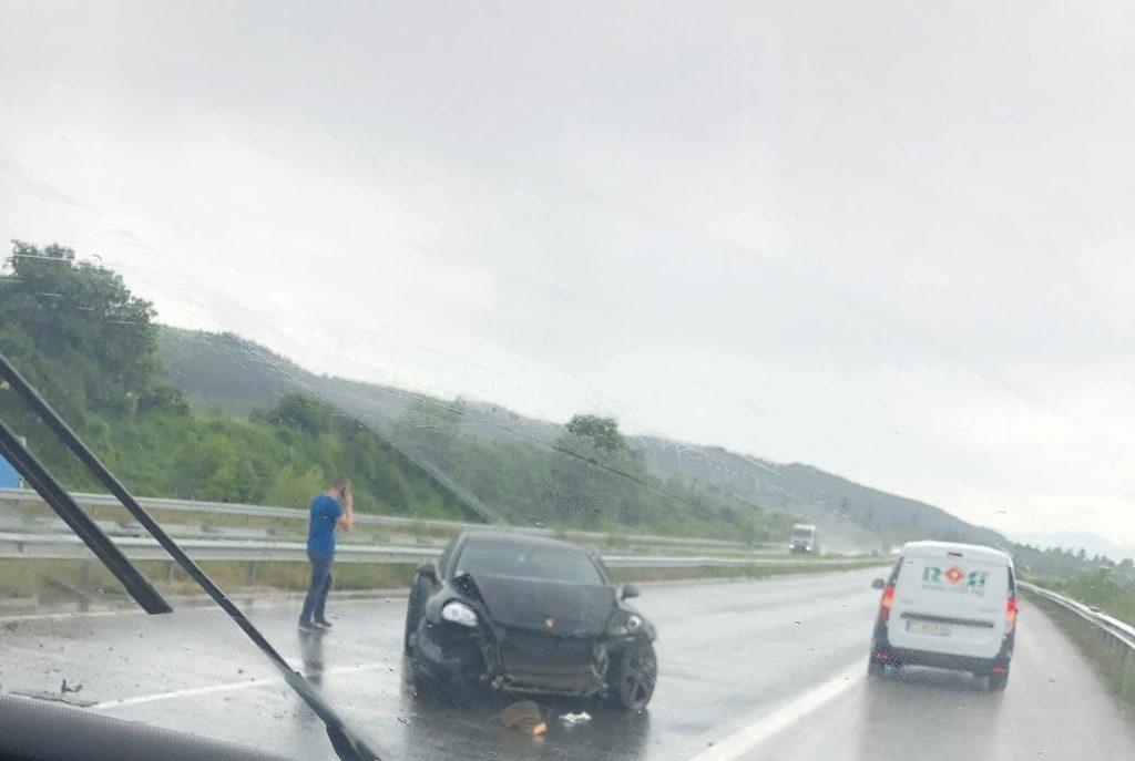 Злополуката е станала при 64 километър на магистралата в посока Благоевград. Към момента властите не разкриват какви са причините и дали има пострадали. Трафикът се осъществява в аварийната лента. Ограничено е преминаването в активната и изпреварващата лента.