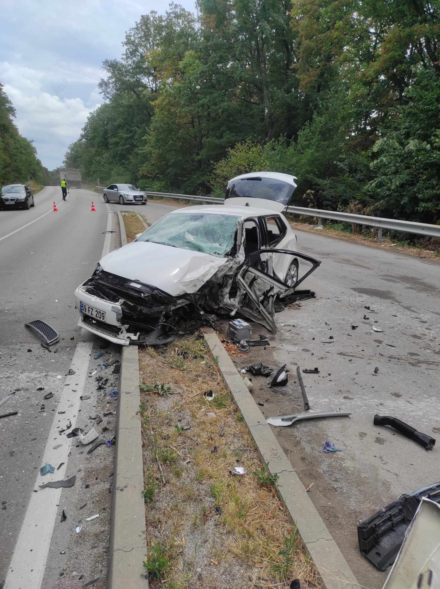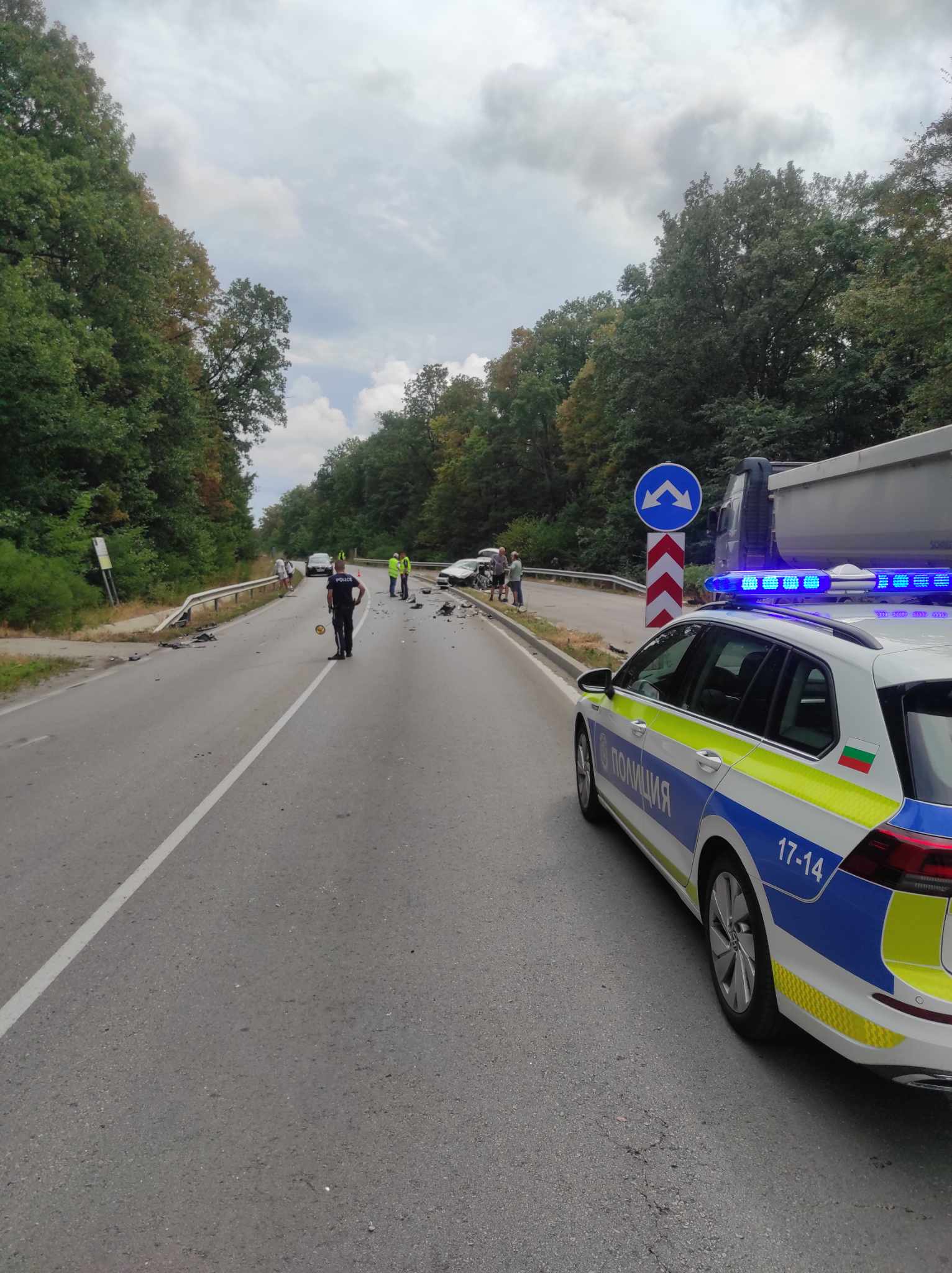 Челно са се ударили „Фолксваген Голф“ с турска регистрация и „Хонда CRV“ с търговищка регистрация.
