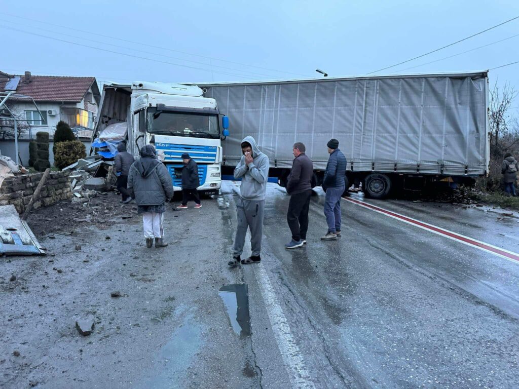 Злополуката е станала тази сутрин. Според първоначалната информация водач на тир с румънска регистрация е заспал зад волана и така се е стигнало до сблъсък с бетонна ограда на влизане в Самоводене от Велико Търново. В резултат на удара превозното средство се е завъртяло и е затворило пътя. Шофьорът няма сериозни наранявания.