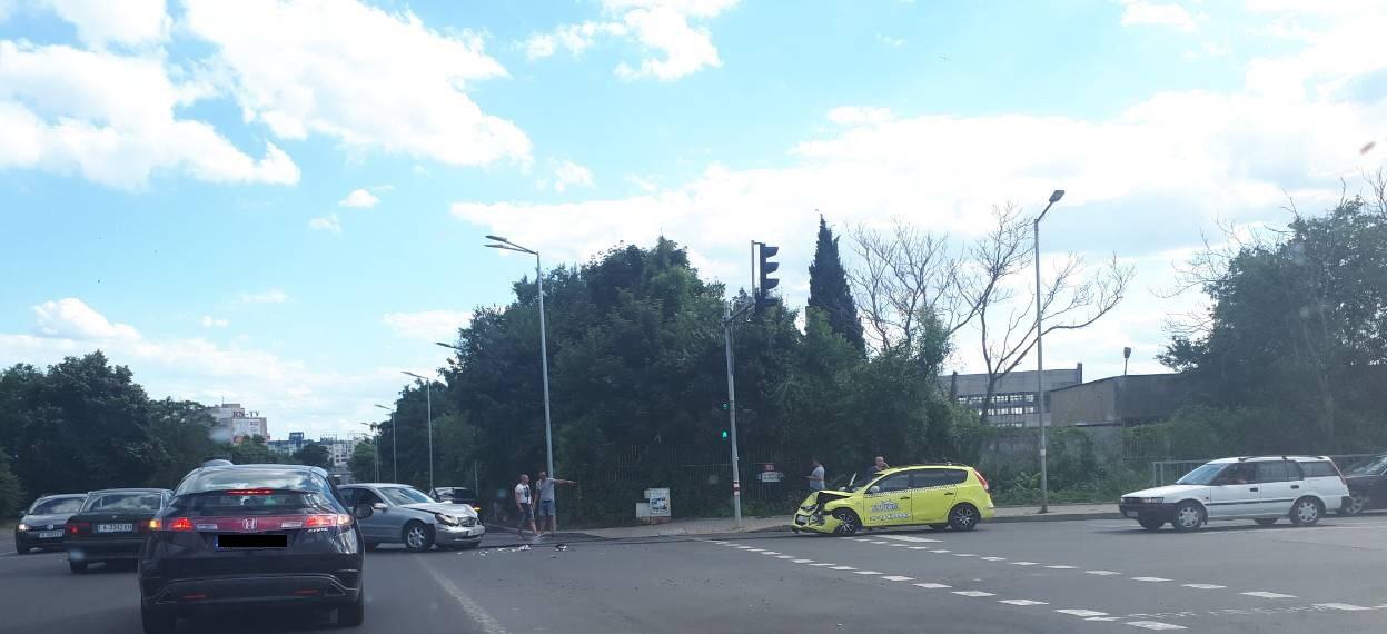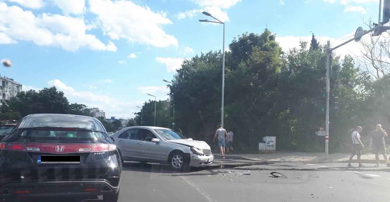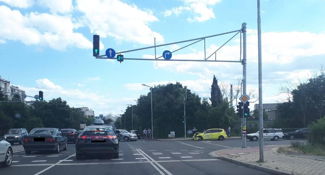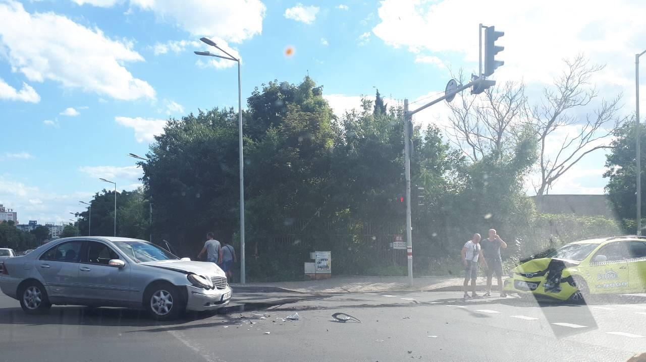 Катастрофа затруднява движението в района на кръстовището между бул. „Струга“ и бул. „Даме Груев“ в град Бургас. Ударът е настъпил между таксиметров автомобил и кола с марка „Мерцедес“.