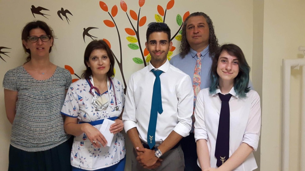 Заедно със съученичката си Маргарита Узунова, която е автор на графичната концепция, те предадоха събраните средства на началника на Отделението д-р Стилияна Томова.