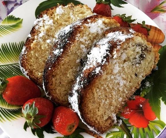 Кексът се пече в предварително загрята фурна 180 градуса за около 40 минути, като проверявате дали е изпечен като го бучнете с клечка за зъби – ако излезе суха кексът е готов. Като изстине поръсвате кекса с пудра захар.
