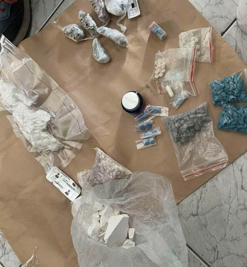 Последвало незабавно претърсване и в дома му в столичния квартал „Гео Милев“, откъдето униформените иззели множество самозалепващи се полиетиленови пликчета, съдържащи вещества на прах, на кристали и бучки, растителна маса, метална мелничка и таблетки.