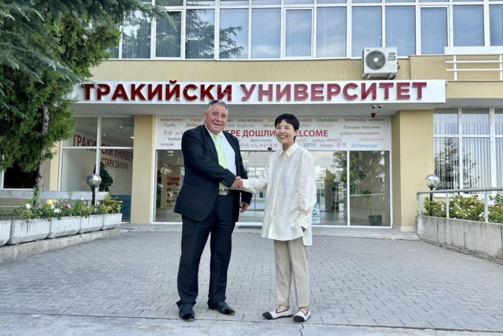 Посланикът на Китайската народна република в България–Н. Пр. г-жа Дай Цинли гостува на Тракийски университет по покана на проф. Добри Ярков–ректор на старозагорското висше училище. Нейно превъзходителство бе придружена от г-н Ян Тиен-началник на отдел „Образование“ при посолството, г-н Пей Дзиенхуя – първи секретар от Търговски отдел и неговата колега Шин Линлин, както и г-ца Ма Ци-секретар на посланика. Поводът за посещението бе задълбочаване на установеното през последните години сътрудничество между китайската страна и Тракийски университет.
