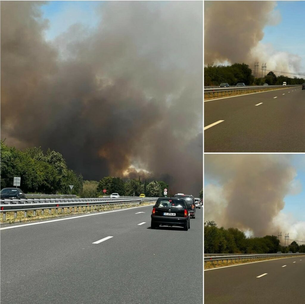 „В момента гори голям пожар в района на село Слънчево. Огънят е и от двете страни на пътя. Магистралата е затворена, видимостта в засегнатия участък е почти нулева.