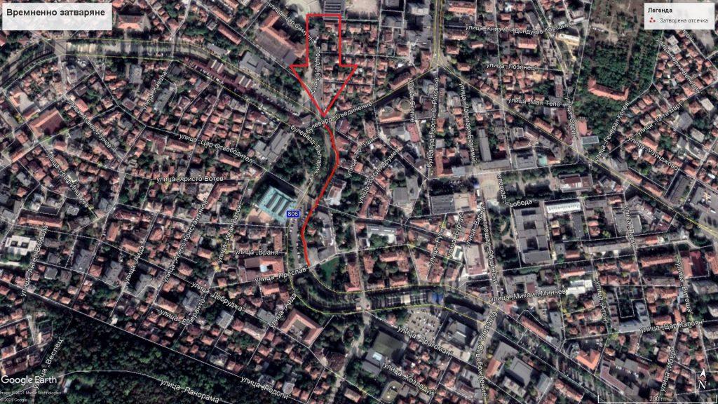 Причината – извършване на резитба на компрометираните тополи, които представляват опасност за хората и движението, намаляване височината на останалите дървета до 30% и оформяне на короните им. Освен това през тези два дни аварийните екипи ще подменят уличното осветление и ще положат нова маркировка на пешеходните пътеки в този пътен участък.