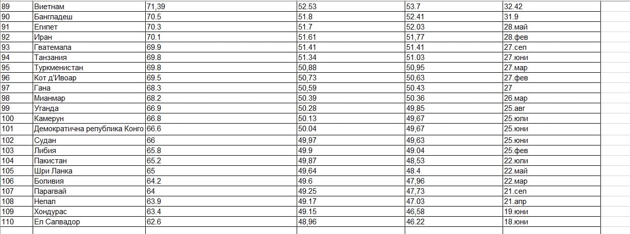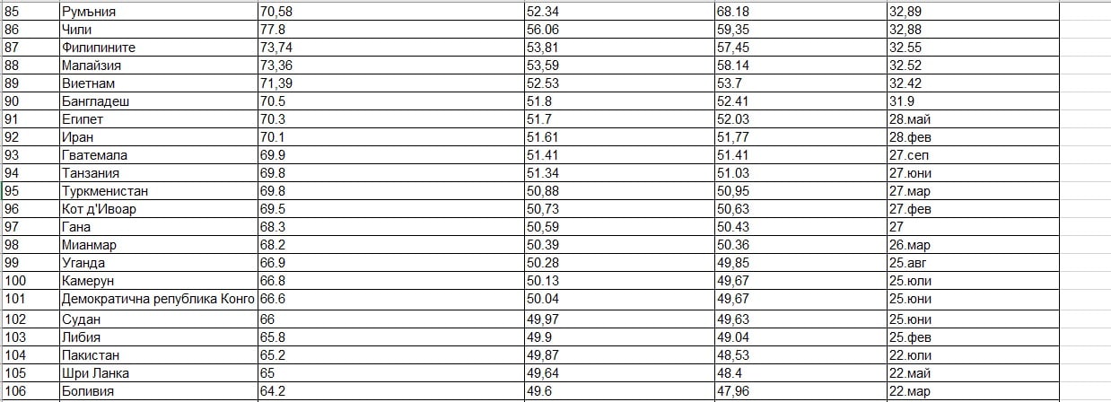 От 110-те изследвани страни, здравеопазването на Тайван е на първо място в списъка, отбелязвайки 78,72 от 100 в Индекса на здравеопазването. В противоположния край на спектъра, с резултат от 18,6, Ел Салвадор оглавява списъка на страните с най-лоши здравни системи за 2024 г. България се намира на 41 място, като преди нея е Латвия, а след нея – Русия.
