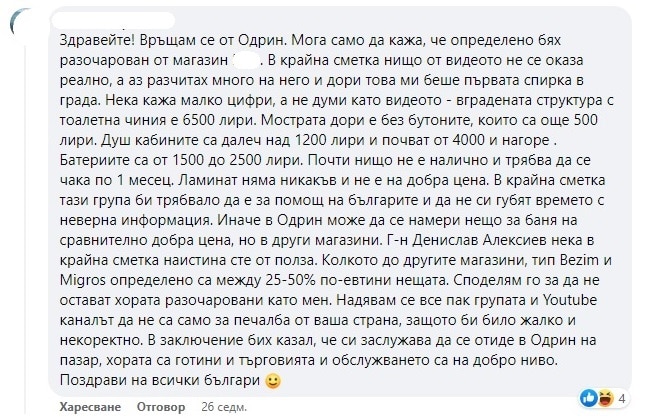 Оплаквания хората изказват и във връзка с предлаганите стоки в строителен магазин. При посещение в него се е оказало, че „нищо от видеото не се оказа реално“ и единственото, което се случва, е хората да си губят времето с „невярна информация“.