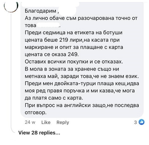 Разочарование изказват и по отношение на това, че са били излъгани на касата на магазин за дрехи, поради незнание на турски език.