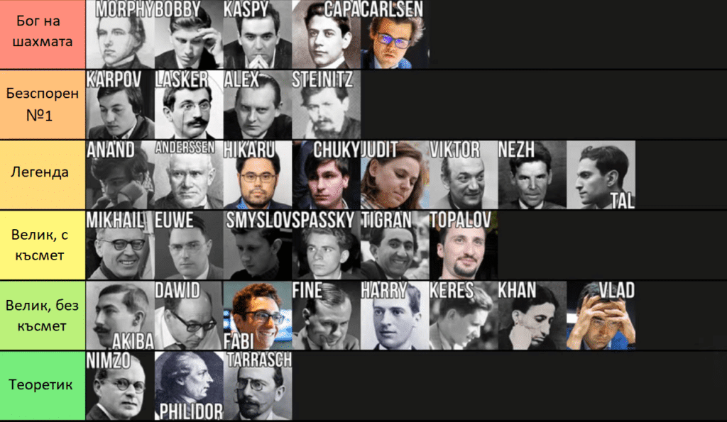 Вие бихте ли класирали Каруана по-високо от Накамура? Как бихте изградили нивата и какви биха били критериите ви? Направете своя списък тук.