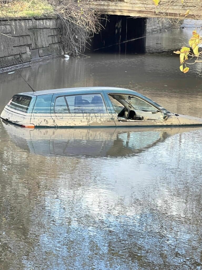 Кола попадна в огромно количество събрала се вода под мост край Варна. Снимки от потъналия до покрива „Фолксваген“ бяха публикувани в социалната мрежа Facebook.