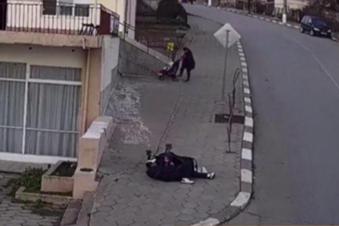 Количка с бебе полетя по тротоар. Мъж успя да я спре и да спаси детето.