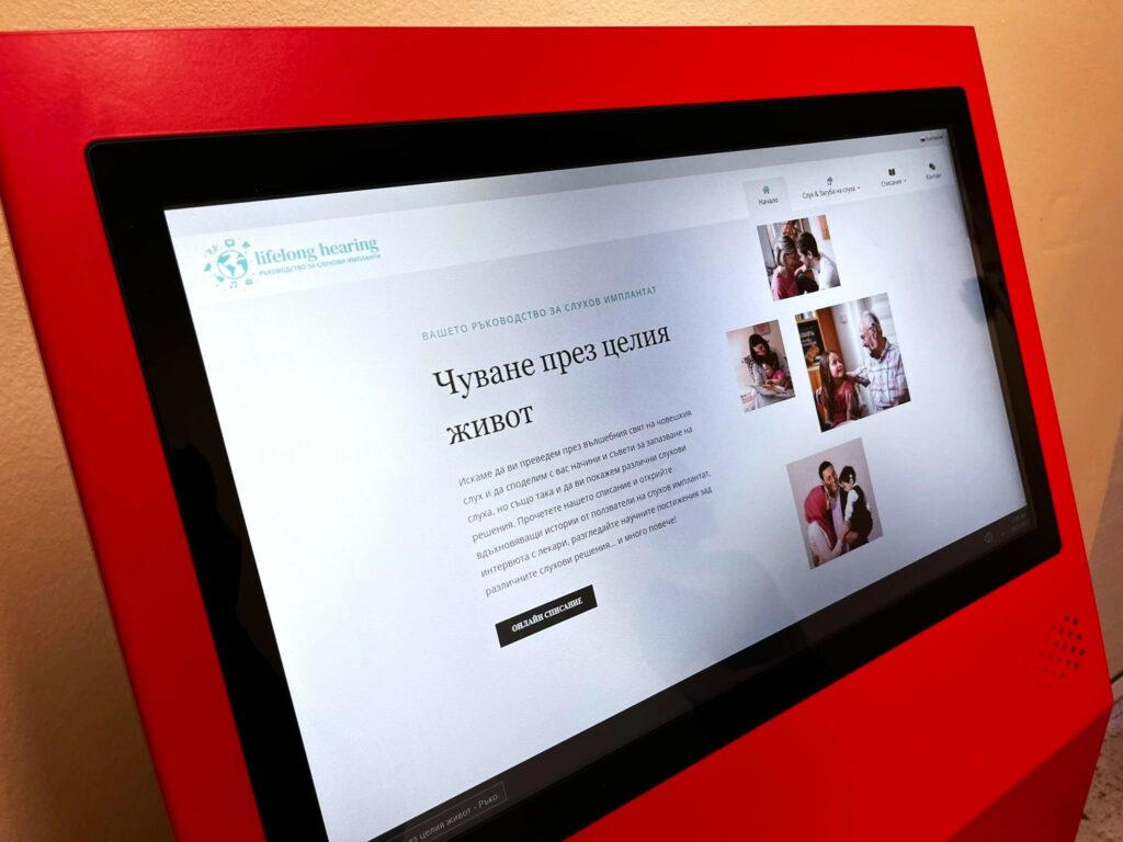 Устройството е дарение за пациентите на Вътрешно консултативното отделение, звено УНГ – Аудиометричен кабинет към най-голямата болница у нас. С негова помощ те ще имат възможност да се запознаят с най-новите постижения при преодоляване на слуховите нарушения при деца и възрастни. Да разгледат множеството статии, свързани с начин на живот, слуховите нарушения, иновативни импланти системи както за средно, така и за вътрешно ухо.