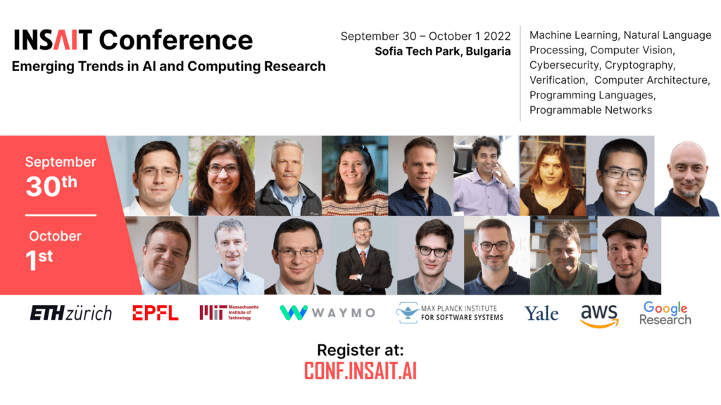Конференцията на INSAIT среща български ученици от топ гимназии със световноизвестни учени в информатиката и изкуствения интелект. По време на събитието ученици от СМГ, ПЧМГ и други елитни гимназии ще имат възможността да се срещнат с топ изследователи от MIT, ETH, Yale, EPFL, Макс Планк, Google, Waymo и Amazon Web Services.