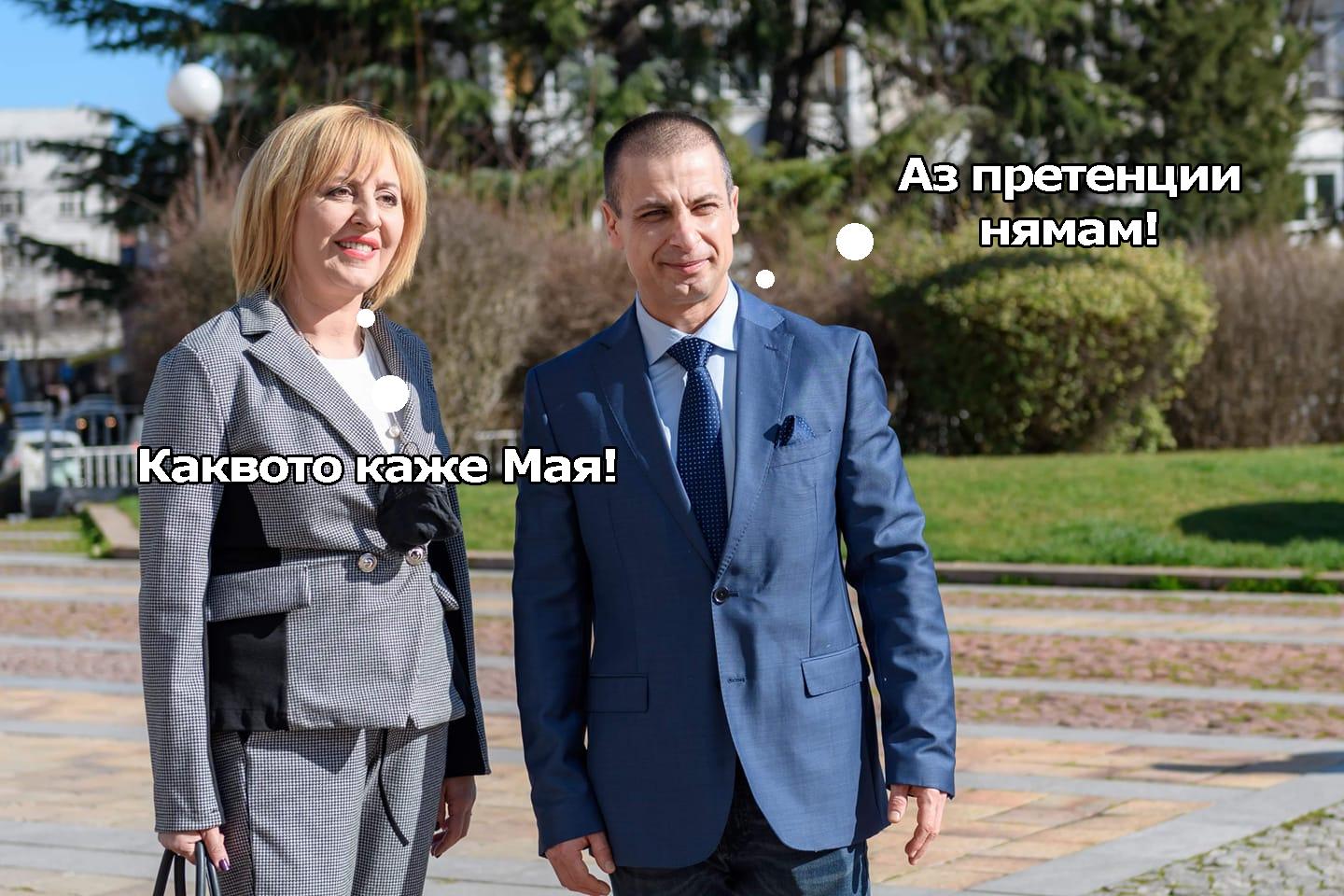 „За да съм наясно със себе си и за да отстраня дори най-малкия риск да подведа хората, които ми гласуват доверие, аз отправих четири въпроса на г-жа Манолова и нейния екип. Получих отговор единствено на питането ми как ще се взимат решенията в тази коалиция. Въз основа на този отговор отказах да съм част от структура, в която ми заявяват, че решенията се взимат по правилото „Каквото каже Мая“, защото това противоречи изцяло на убежденията ми. Аз съм доказал във времето, че правя само онези неща, за които съм убеден, че са правилни, а не такива, за които някой нарежда.“