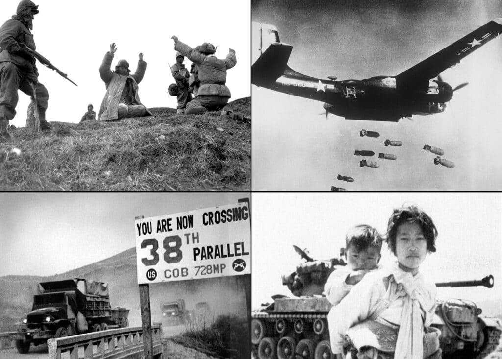 Според историческите данни войната избухва на 25 юни 1950 г., когато първите от общо 135 000 севернокорейски военнослужещи, по оценка на американската армия, нахлуват през 38-ия паралел, разделящ Северна и Южна Корея, за да осъществят пълен контрол над Корейския полуостров. САЩ, под ръководството на президента Хари Труман, реагират с така наречената „полицейска акция„, като събират група международни съюзници под егидата на „Командването на Обединените нации“, за да се притекат на помощ на Южна Корея. Тогава 22 държави предоставят бойни единици и специални части за оказване на медицинска помощ.