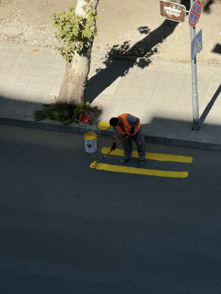 В пиков час мъж със сигнална жилетка извадил кофа с боя и започнал да чертае накриво жълта пътека на ръка – до детска градина „Светлина“. Първоначално хората предположили, че това е гражданска инициатива.