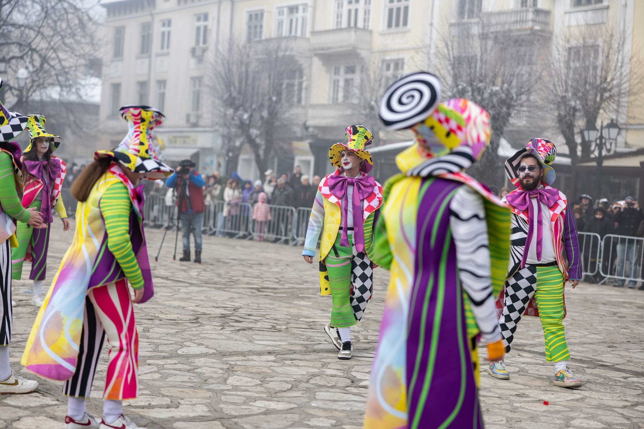 Кукерска група „Джамал“ от село Габра – показа традицията на Йордановден, където персонажи като мечкар, баба и поп оживиха площад „Преображение“.
