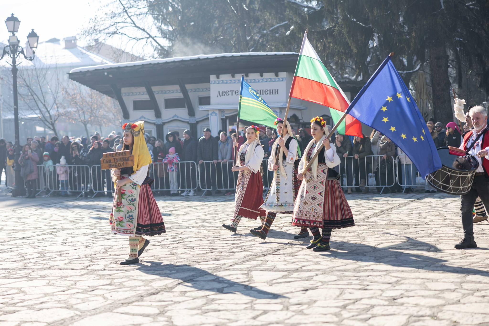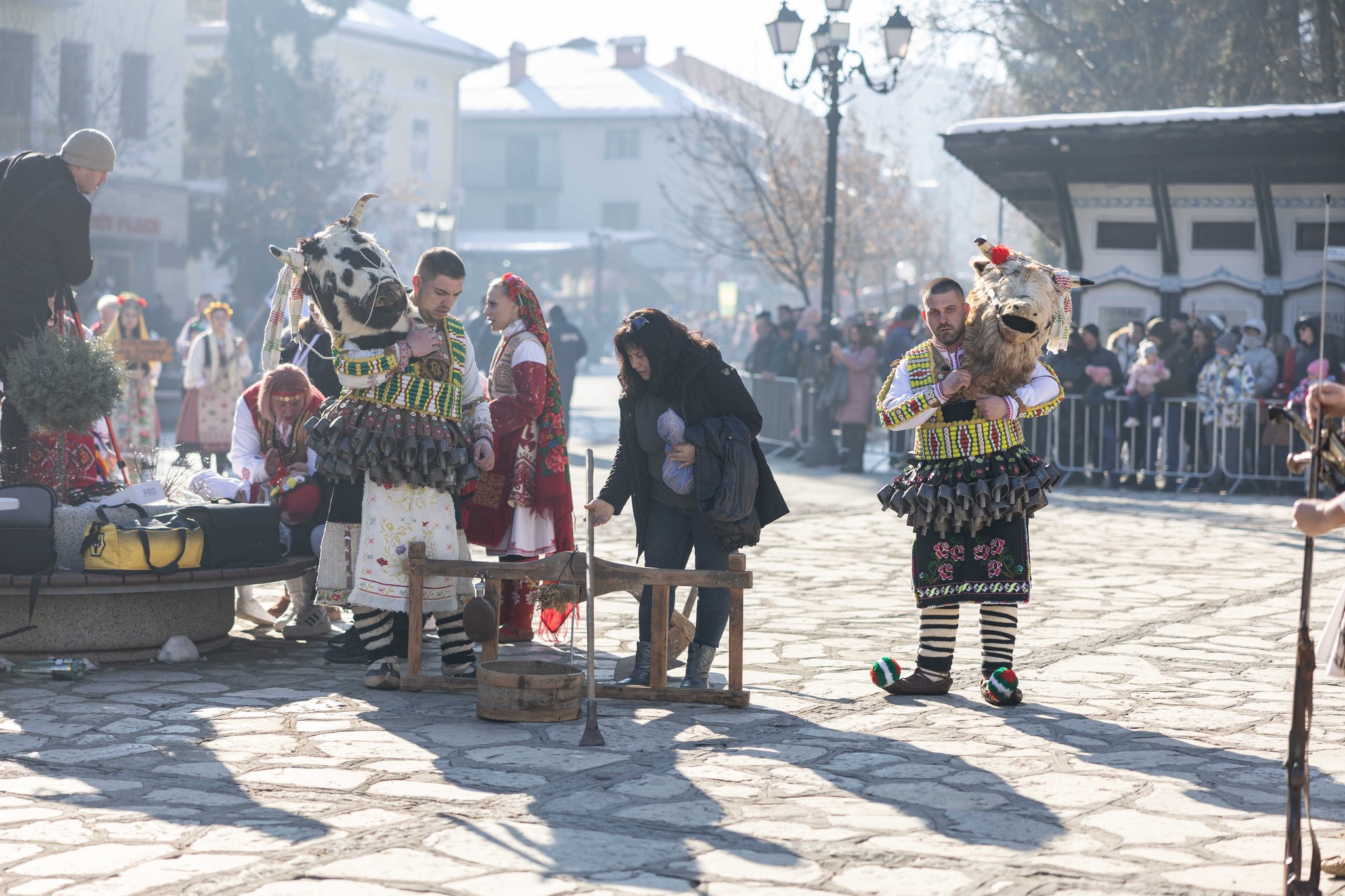 Кукерската група от село Бачево – представи обичая Бабинден с 150 души, пресъздавайки бачевското бабино хоро и традицията на „поливане на бабата“.