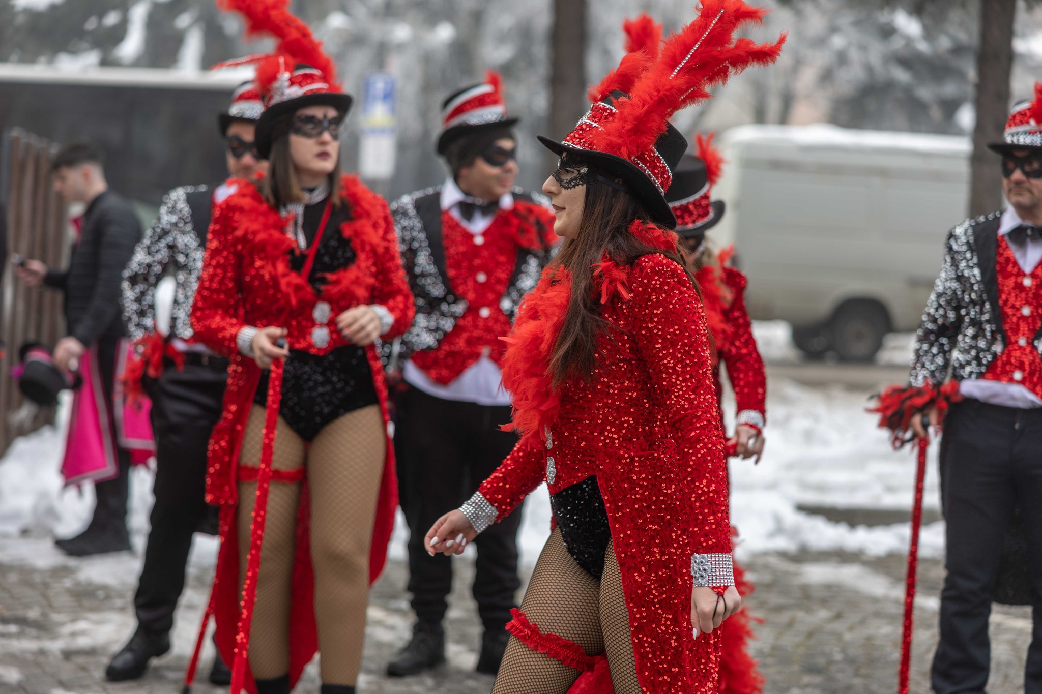 Група „Мулен руж“ /Струмица, Северна Македония/ – с 20 танцьори в червени карнавални костюми, които впечатлиха публиката.